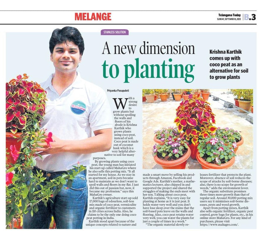 MahaGro is an All Purpose Premium Coco Peat Potting Mix which consists of an unique blend of Coco peat, Vermiculite and 100% Organic Slow Release Fertilizer which makes it very easy to handle and use. Its a soil less potting mix best for gardening.